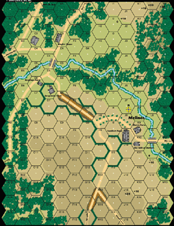 | Misc Rules: | Night rules, initial NVR is 4. D: M5 guns set up on north edge hexes at Level 3, 4 hexes beyond edge |
