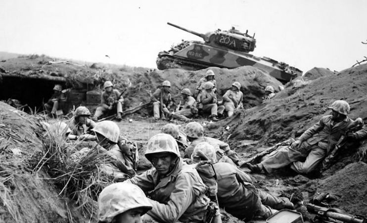 For the 96th Division, April 5th was the beginning of dealing with stiff resistance on Okinawa. The 383rd estimated at one time during the day that its forward elements were receiving fire from twenty machine-guns and from fifteen to twenty mortars, in addition to fire from enemy artillery pieces. The 383rd efforts concentrated on Cactus Ridge, 600 yards southeast of Mashiki, which commanded the high ground between Uohitomari and Oyama. And infantry company supported by tanks made a direct assault on Cactus Ridge under heavy fire. The ridge was protected by an anti-tank ditch, barbed wire, and a long minefield.Attacker: American (Elements of the 383rd Infantry Regiment and supporting elements of the 763rd Tank Battalion)
