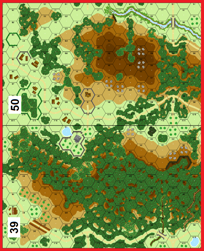 The Finnish 6th Division was successful in advancing to Lake Nurmi, forcing the Russians to fall back in disorder behind the Tuutsa River. Troops from the 169th Division, although well spent from their summer fighting, attacked across the river forcing the Russians out of Allakurtti. However, on the 6th, an attack by four German regiments failed and the day after a massive rainstorm made it impossible to advance. For two days the fighting was bogged down around Hill 386. . . . . Now you will HAVE to overcome your fear of board 39 and get some exciting close quarters action going. Bone up on your CX and advance versus difficult terrain rules for this scenario featuring 15 German squads against 13 Russian entrenched defenders.Attacker: German (Elements 169th Infantry Division)