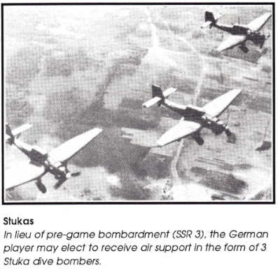 | Misc Rules: | No hills Bd 3. A: optional Air Support in lieu of pre-game bombardment |