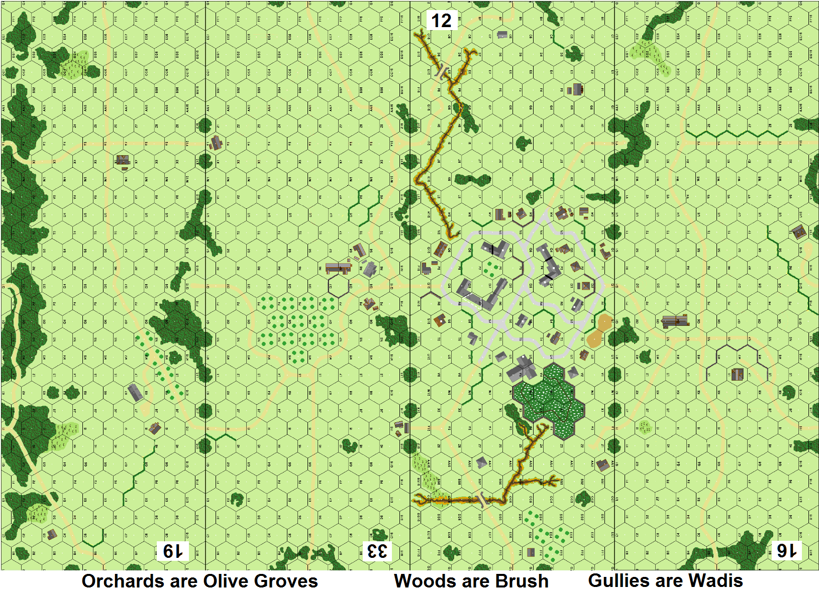 | Misc Rules: | Terrain: All buildings are Stone, Orchards are Olive Groves, Woods are Scrub, Gullies are Wadis. |