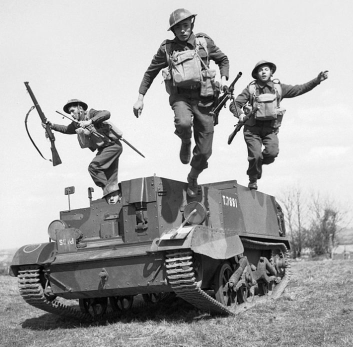 Operation Charnwood opened at 0730-hrs and the Glengarrians and Fusiliers began their attacks protected by a hail of shells, which threw up great clouds of dust, so great that the early morning sun was almost obscured and the Germans were forced to crouch in the bottoms of their trenches. The Highlanders made good progress, quickly closing upon Gruchy. When the artillery lifted the Germans came to life. The Germans brought their machine-guns to bear upon the leading companies of the Highlanders while their supporting mortars began to land among the advancing troops. At this point the equivalent of an old fashion cavalry charge helped turn the tide. Lt. Ayres of the Glengarrians ordered his carriers to charge across the open fields and through the Highlanders into the stiffly held village.Attacker: Canadian (Stormont, Dundas, and Glengarry Highlanders supported by Sherbrooke Fusiliers and B Squadron, 7th Canadian Recce Regt.)